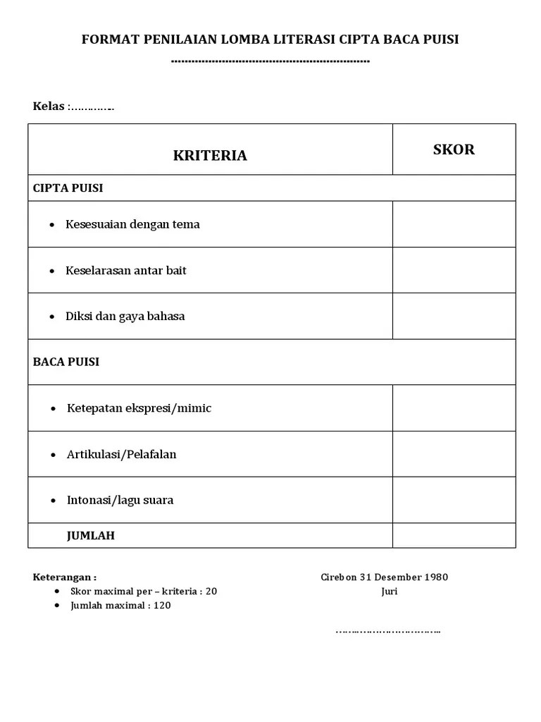 Format Penilaian Lomba Cipta Puisi : Kriteria Penilaian Lomba Cerpen / Prinsip logis (logis dan konsisten) d.